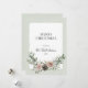 Rose und Pine Cones Weihnachtsgrün Urlaub Grußkarte.. Auf einem zarten pastellgrünen Hintergrund befindet sich ein Vintager, weißer Textrahmen mit Deckenrand, in dem Sie Ihren Urlaub über einem Blumenstrauß aus rosa Rosen, Kiefern und Weihnachtsbotanicals genießen können. Beispieltext lautet: "Frohe Weihnachten mit Liebe, der Robertsons 2023." Alle Texte können mit eigenen Informationen auf der Personalisierungsvorlage überarbeitet werden.