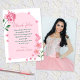 Dieses rosa Quinceañera Design mit einem Bogen mit Rose, Blume und Schmetterlingen. Du kannst deine eigene Danksagung hinzufügen. Auf der Rückseite können Sie ein Foto hinzufügen. Sehen Sie sich die gesamte passende Auflistung an. Alle Kunstwerke werden digital von Kaitlyn Thomas © gezeichnet.