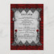 Eine sehr dekorative und sehr gotische Hochzeitszeitszettel-Karte, die so genannte "Blood Rose and Silk Red Gothic Wedding Details", kann einfach mit Ihren eigenen wichtigen Informationen für Ihre Hochzeitsgäste personalisiert werden. Das Design ist sehr dekadent, üppig gotisch gestaltet, mit einem bedrückten Pergament-Papier auf einem roten, reichen, roten Seidenhintergrund. An der Oberseite und am Ende des Pergaments befinden sich graue und schwarze gotische Juwelen, die die Kanten zieren, mit Paaren von grauen, kleinen silbernen Schädeln, die an den Ecken hängen, mit roten, schattigen Augen. Es gibt auch rote Rosen an der Seite mit schwarzem Spitzen-Band, um das sprichwörtliche, gotische Flair dieser Gehäusekarte zu beenden. Auf der Rückseite der Karte befindet sich wieder das graue Pergament-Aussehen, das den gesamten Bereich abdeckt, mit einer größeren rote Rose und Spitze in der Mitte. Bitte beachten Sie, dass dieses Rose-Image bei Bedarf in den Optionen Personalisieren (bearbeiten) entfernt werden kann, z.B. wenn Sie weitere Informationen auf der Kartenrückseite hinzufügen möchten.
