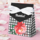 Schwarz-Weiß-Karo gedeckte Gefälligkeitsboxen, hervorgehoben mit einer rote Rose vorne und hinten auf diesen 3" breiten x 1,5" langen x 3,25" hohen Zelt-Gefälligkeitsboxen. (5 Kästchen für SIE ENTWICKELT - siehe unseren Link zum Shop.) Ideal für Ihr Derby Party, Derby Themenabend Brautparty, Geburtstagsparty und vieles mehr. PASSENDE Artikel in unserem Geschäft.