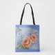 Schöne Aquarellfarben-Rose auf einer hübschen Tasche im Hintergrund.