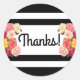 Rose zu modernen Schwarz-Weiß-Streifen Vielen Dank Runder Aufkleber