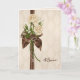 Cremefarbene Rose mit Perlen und braunes Band auf elegantem Damast-Hintergrund zum 45. Hochzeitstag für das Paar.