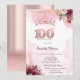 Roségold Glitter Rosen Krone 100. Geburtstag Einladung