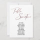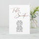 Dieses schlichte, elegante Design zeichnet sich durch "Table Sesiebeen" aus, die in einem modernen Schriftart in Handschrift dargestellt und mit einem Golffekt aus Imitat-Metallic-Rose verziert wurde. Der Schriftart für Namen kann auf Wunsch geändert werden. Wie auch die Hintergrundfarbe. Die Details werden sowohl vorne als auch hinten angezeigt. 151 //