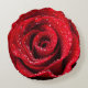 Verzieren Sie und personifizieren Sie Ihr Zuhause mit Kissen, die Farbe und Art darstellen. Dieses klassische runde Kissen holt Komfort und eine lässige Richtung zu Ihrem Zuhause und kann auf einem Bett, einem Stuhl oder einem Sofa verwendet werden. Dieses Blumenkissen kennzeichnet ein nahes oben einer tiefroten Rose mit Regentropfen.