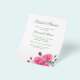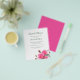Günstige Brautduscheinladungen mit rosa Rosendesign. Weißes Papier mit dunkelgrünen Vorlagen. Realistische Rose mit Knospen und Grünpflanzen schmücken den Boden des Papiers. Das Gegenteil ist massiv hell pink.