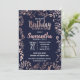 Rosen Gold Floral Navy Blue Brush Script Geburtsta Einladung