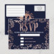 Elegante, schicke und moderne Imitate druckten Rose goldene Blätter mit Blumenmotiven und Pinselschrift auf marineblau, UAWG Postkarten. Dieses klassische und elegante Design eignet sich perfekt für stilvolle und trendige Events, wie Hochzeiten und alltägliche Anlässe. Personalisieren Sie Ihre eigene Nachricht auf der Vorderseite sowie ein individuelles Monogramm auf der Rückseite. Das gesamte Foto-Druckdesign.