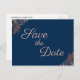 Rosen Gold Navy Blue Floral Save the Date Ankündigungspostkarte