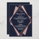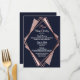 Elegant, Chic und modernes mit einem retro Vibe, Imitat druckte Rosengoldgeometrische Diamant-Form-Kontur auf Marineblau, Malvenfarbe und errötet der rosa Diamantausschnitt, wedding Empfangsmenükarten. Dieser klassische und hoch entwickelte Entwurf ist für den noblen, stilvollen und trendy Hochzeits-Empfang perfekt. Personifizieren Sie mit Ihrem eigenen Menü auf der Front, zusammen mit Ihren Namen und Daten. Fertigen Sie dann die Rückseite mit Ihrer Monogramminitiale besonders an. Aller Fotodruckentwurf.