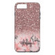 Dieser girly rosa Marmor- und RosengoldGlitter-Mobiltelefonkasten kann mit Ihrem Namen und Monogramm personalisiert sein.