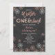 Winter ONEderland erste Geburtstags-Einladung mit weißem Hintergrund und den Schneeflocken perfekt für Wintergeburtstag.
