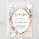 Boho Blush Pink floral getrocknete Palme Blätter Rose Gold Metallic Rahmen Hochzeitung Speichern Sie das Datum... Unsere luxuriöse boho blumengeschmückte Save the Date-Karte bietet eine Anordnung von schönen rosafarbenen Rosen, Eukalyptus und getrockneten Palmen-Blätter rund um ein Imitat-Rose goldfarbenen metallische ovale Rahmen und bildet einen eleganten Rahmen für den Einladungstext im Inneren. Die Rückseite der Karte enthält Ihre Hochzeitswebsite-Informationen und eine QR-Code-grafische Vorlage, die Sie durch Ihre eigene ersetzen (oder löschen) können. Alle Beispieltexte auf beiden Seiten der Karte (mit Ausnahme der Save the Date Text-Grafik) können mit eigenen Angaben auf der Personalisierungsvorlage leicht überarbeitet werden.