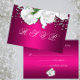 Eine sehr hübsche und farbenfrohe, dunkelrosa Hochzeitskarte mit RSVP-Karte, vorne ein luxuriöses, weißes rosa Brautbouquet und auf der anderen Seite der Antwortkarte ein kleineres, weißes Bouquet.