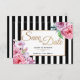 Sehr schöne rosa Blumen auf den Augen, die schwarz-weiße Streifen. Der Text für Namen und Datum kann in diesem Design angepasst werden. Save the Date ist die Formulierung in einem schönen Schriftart mit Goldeffekten erstellt und nicht editierbar. Einladungen und Karten sind in einer Auswahl von Papiertexturen und Formen (gerundete Kante, geschmolzene usw.) erhältlich. Sie finden andere Designs mit vielen koordinierenden Produkten im Angebot, einschließlich Einladungen, Save the Date und rsvp Karten, danke Tags, und mehr.