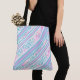 Dieses sehr schicke Tote Bag mit einem Muster aus diagonal rosa, himmelblauen und weißen Decksstühlen und rosa Rosen und weißen Schmetterlingen auf Sky Blue Part der Posh & Painterly 'Summer Days' Kollektion passt zu jedem Tote Bag und kann durch Drehen des Musters oder durch Änderung der Skala für ein ganz anderes Aussehen angepasst werden.