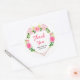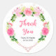 Diese lustige und skurrile Hochzeit danke Ihnen Aufkleber mit Aquarellrosa Rosen und Blattwerk auf einem goldenen geometrischen Rahmen. Der Text kombiniert handgeschriebene Skript- und Serif-Schriftart für ein stilvolles und modernes Aussehen. Das ist perfekt für einen Frühling oder Sommer rustikale Hochzeit.