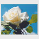 Weiße Rose unter blauem Himmel. Das lebendige Foto einer wunderschönen blühenden Rose ist ein großartiges Blumengeschenk. Die ruhige Schönheit der weißen Rose spiegelt neue Anfänge, Reinheit, Loyalität und Unschuld wider. Weiße Rosen symbolisieren die junge Liebe, die die Braut für ihren Ehegatten hat. Weiße Rosen symbolisieren auch das Fundament einer Beziehung, weshalb sie oft an einem Hochzeitstag gesehen werden. Die weiße Rose ist eine traditionelle Blume der Hochzeit. Die weiße Rose ist eine passende Blume, um eine neue romantische und eheliche Bindung zu feiern.