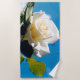 Weiße Rose unter blauem Himmel. Das pulsierende Foto einer blühenden Rose ist ein großes Kunstgeschenk an der Blumenmauer. Die ruhige Schönheit der weißen Rose spiegelt neue Anfänge, Reinheit, Loyalität und Unschuld wider. Weiße Rosen symbolisieren die junge Liebe, die die Braut für ihren Ehegatten hat. Weiße Rosen symbolisieren auch das Fundament einer Beziehung, weshalb sie oft an einem Hochzeitstag gesehen werden. Die weiße Rose ist eine traditionelle Blume der Hochzeit. Die weiße Rose ist eine passende Blume, um eine neue romantische und eheliche Bindung zu feiern.