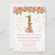 Pink Roses Floral 1. Geburtstagsfeier Party Einladung für ein 1-jähriges Mädchen mit modernem Drehbuch und Goldschrift Glitzer.