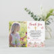 Elegante Aquarellfarbe Rosen Blüten und Schmetterlinge Mädchen Erste Heilige Kommunion "Danke" Design mit Blumen in verschiedenen Tönen von Rosa bis Lila mit olivgrüne Blätter in einem Bogen Typ Bouquet umgeben von den Details Ihres süßen Mädchens. Ein goldenes Farbkreuz sitzt unter dem "Danke", und auf der Rückseite befindet sich ein dunkelrosa Marmoraussehen mit subtilem Hintergrund und einem koordinierenden Blumenschwanz unten. Dieses zusammengesetzte Blumendesign ist von Holiday Hearts Designs (Rechte vorbehalten).