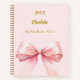 Ein weich rosa, rosafarbener Hintergrund, der mit einem großen Bogen verziert ist. Personalisieren und fügen Sie ein Jahr, Name und Text hinzu.