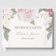 Elegantes Roses Garden Wedding Gästebuch, das mit einer Reihe von rosa und cremefarbenen Rose auf weißem Hintergrund gestaltet wurde. Um mit den Namen und dem Hochzeitsdatum der Braut & Bräuche zu personalisieren, fügen Sie einfach Ihren Text in unsere einfache Vorlage ein.