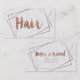 Eine moderne, stilvolle Haar-Stylistempfehlungs-Geschäftskarte mit moderner Handbeschriftungsart-Bürstentypographie in der Imitat-Rosen-Goldfolie auf einem trendy und eleganten weißen Marmorhintergrund mit geometrischer Grenze des Rahmens. Wenn Sie irgendeine Kundenbezogenheit benötigen, zögern Sie nicht, wenn Sie mit mir in Verbindung treten