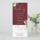 Eine Rosenholz-Hochzeitseinladung mit rustikalen botanischen Blätter im Grünen und eleganter Typografie. Die Einladung enthält eine RSVP-Karte, die abgeschnitten werden kann, und Informationen zu den Gästen. Entwickelt von Thisisnotme©