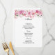Menükarte wird mit einem Kunstdruck von hübschen rosa Rosen dargestellt, der oben auf der Karte auf dem weißen Kartenpapier gezeigt wird. Skript und Standardtext in schwarzer Farbe. Passen Sie die Menüelemente an, indem Sie auf die Schaltfläche Bearbeiten klicken, suchen Sie nach rechts und suchen Sie geeignete Felder, um Ihre Informationen zu ändern. Wir wünschen Ihnen viel Spaß beim Hochzeitsfest.