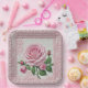 Hübsch rosa Rosa Rose mit Knospen in einem Quildesign