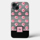 Dieses schicke gestreifte Blumendesign hat ein Vintages und feminines Ambiente. Feine rosa Rosen verstreut in einem frischen, schwarz-weiß gestreiften Muster, mit einem schwarzen Monogramm auf einem rosa Block, das auf einem schwarzen Hintergrund steht. Wenn man sich nicht zwischen Streifen und Blumen entscheiden kann, muss man sich nicht mit diesem Design abfinden. Geben Sie den gewollt Initial im Bereich Personalisieren ein.