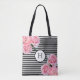 Rosenrosen Blume Schwarz-weiße Streifen Monogramm