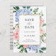 Moderne Save the Date Karte mit hellblauen/staubblauen Hydrangeas in Aquarellblau mit pastellrosa, rot, pfirsichfarben, weißer Rose, Peonies, Salbei Eukalyptus-Blätter, Ästen und Blattwerk. Sanfte und verträumte romantische Farbtöne Frühjahr Wasserfarben Blumen Designs zu Ihrem Thema Hochzeit. Weitere passende Designs und Variationen finden Sie in meinem "Blitzweddingpaperie" Shop. Und zögern Sie nicht, mich für weitere Anpassungen oder Match-Artikel zu kontaktieren.