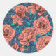 Rosenrosen mit blauen Blätter auf blau Runder Aufkleber