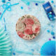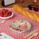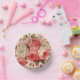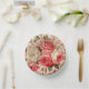 Helle und farbenfrohe rosa Aquarellfarben, weiße Wildblumen und schlängelgrünes Blattwerk auf pastellfarbenem pfirsichfarbenem Hintergrund.