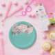 Romantische Hydrangeas aus weißer Spitze mit Touchs von Babys atmen - hübsche Hydrangeas aus Weiß und Pfirsichweiß mit rosa Rosen und weißen Babys atmen - passen Sie Ihre Details an.