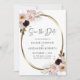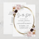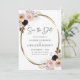 Blush Roses Gold Metallische Hochzeit Speichern Sie das Datum Einladung.. Unsere luxuriöse, blumengeschmückte Save the Date-Karte bietet Bouquets von schönen rosa Rosen, die rund um ein Imitat mit goldfarbenem, metallischem ovalem Rahmen geschwungen sind und einen eleganten Rahmen für den einladenden Text im Inneren schaffen. Auf der Kartenrückseite befinden sich Ihre Rücksendeadresse, Informationen zur Hochzeitswebsite und eine grafische QR-Code-Vorlage, die Sie durch Ihre eigene (oder löschen) ersetzen können. Alle Beispieltexte (mit Ausnahme der Save the Date Text-Grafik) auf beiden Seiten der Karte können mit eigenen Angaben auf der Personalisierungsvorlage leicht überarbeitet werden.