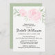 Schöne, elegante und formelle Einladungen für Hochzeiten beginnen mit sanften, rosa Rosen, die fast in die Seite schmelzen. Sie sind von einer Touch von sanften, schlängelgrünen Blätter umgeben. Der Name der Braut ist in einem verziert fließenden Drehbuch geschrieben. Der Rest des Textes ist ein einfacher, aber moderner Schriftart. Die Rückseite dieser eleganten Einladung ist sanftes Salbeigrün mit einem sehr subtilen Blattmuster. Diese Einladungs-Suite ist ideal für eine Hochzeit im Sommer oder im Garten.