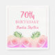 Rosa Rose Floral 70. Überraschung Geburtstagsparty Napkins. Blumenservietten zum Geburtstag mit schönen rosa Rosen und tropischen Blätter. Ideal für eine Frau, die ihren siebzigsten Geburtstag feiert. Geben Sie Ihren Namen und Ihr Alter ein.