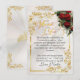 Thank your guests for joining your Quinceanera celebration with this beautiful Roses, Gold Leaves & Tiara Thank You Card and tell them how much they mean to you. The design is embellished with a frame of gold leaves and a floral bouquet, "Thank You" in elegant script and a pre-written message that can be easily changed with your own special message. The tiara on the back can be changed or removed. Designed as coordinate with the "Floral & Gold Leaves" Quinceanera collection. To change details, click «Personalize». To move the text or change the text size, font, or color click «Click to customize further»
