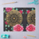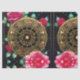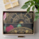 Rosa Rosen und aquamarine Blätter auf dieser goldenen Filigree Uhr umgeben von den Sternen AI Art von Minx267