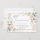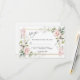 Hochzeitsankarte mit einer Aquarellbildermalerei von wunderschönen rosa weißen Rosen mit grünem Blattwerk im Aquarellstil. Text "uAwg" wird in einem Skript-Schriftart geschrieben.