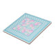 Eine hübsche Keramik, mit einem rosa Rosenmuster auf himmelblauem Hintergrund, gepunktet mit weißen Schmetterlingen innerhalb einer Grenze von Sky Blue und White Karo Gingham. Fügen Sie einen Holzrahmen hinzu, um ein nützliches und dekoratives Trivet zu machen!