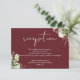 Dieses elegante botanische Grün verlasst Hochzeitsdetails Gehäuse-Karte kann mit Ihren Informationen in schicken Typografie auf einem rosa Rosenholz Hintergrund personalisiert werden. Entwickelt von Thisisnotme©