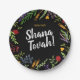 Rosh Hashanah Jüdische Neujahrsfloral auf schwarz Pappteller