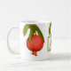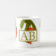 Eine Rosh Hashanah Theme Monogram Kaffee Tasse. Das Design weist einen Granatapfel auf einem roten Hintergrund auf. Die Initialen sind in einem modernen Skript und können leicht geändert werden, um Ihre eigene persönliche Kaffee-Tasse Für persönliche oder geschäftliche Zwecke.