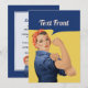 Rosie the Riveter. Benutzerdefinierte Hintergrund- und Bannerfarbe. Benutzerdefinierter Text auf beiden Seiten.