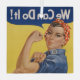 Rosie the Riveter "We Can Do It!" war eine kulturelle Ikone Amerikas während des Zweiten Weltkriegs und repräsentierte die Frauen, die während des Zweiten Weltkriegs in Fabriken und Werften arbeiteten, von denen viele Munition und Kriegsmaterial produzierten. Diese Frauen nahmen manchmal völlig neue Jobs an, die die männlichen Arbeiter ersetzten, die dem Militär beitraten. Das Bild von Rosie wird im Feminismus noch immer als positives Symbol für Power und Frauenförderung verwendet.
